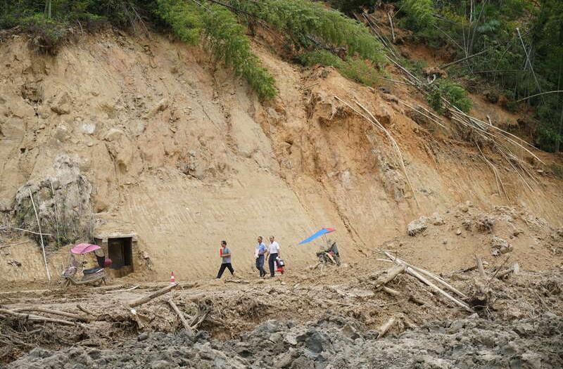 海南強降雨致海三高速K59處積水倒灌公路 雙幅交通阻斷有車被